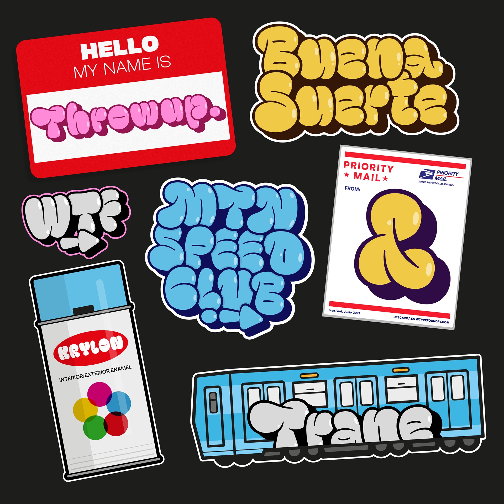 Throwup Font is a display typeface inspired by Graffiti culture specifically from “Flops” or “Bombs”. These are generally made with spray paint and valves (known as caps or fatcaps) made especially for this practice.